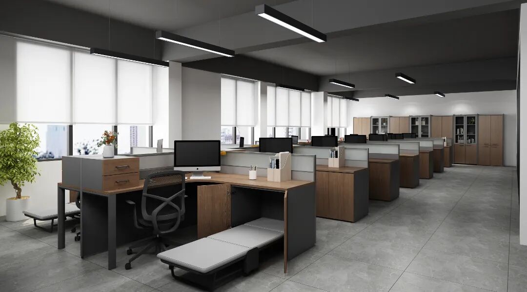 搭配暖色调办公家具以应对无自然光问题