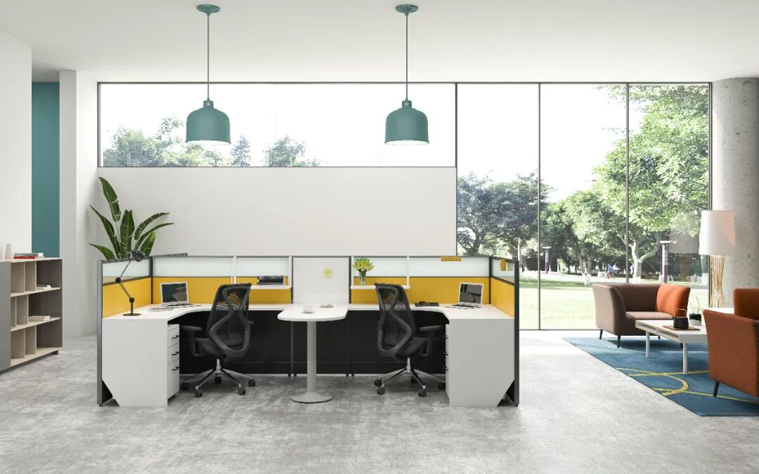 1、针对光源比较充足的办公空间,总体来说办公家具色系选择余地比较大,但不要只选择单一配色的办公家具,容易显得寡淡无趣,建议可以用活泼色系的办公家具,在视觉上能形成元气满满的空间,无形中提升员工的工作效率。